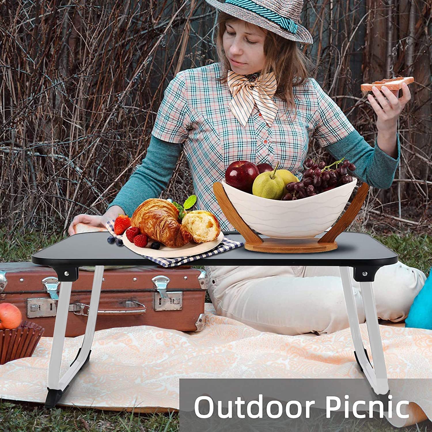 MATERIAL ENVIRONMENTAL PROTECTION - laptop study table is made of MDF solid wood particle board, safe and environmentally friendly. The surface is smooth, non-toxic, not easy to stretch, moisture-proof, scratch-resistant, high-temperature resistant; while the legs are made of aluminum alloy tube with powder coated finished, more strong and sturdy, curved ergonomic portable laptop table designed for sitting. This table will last for a lifetime and will remain corrosion-free.